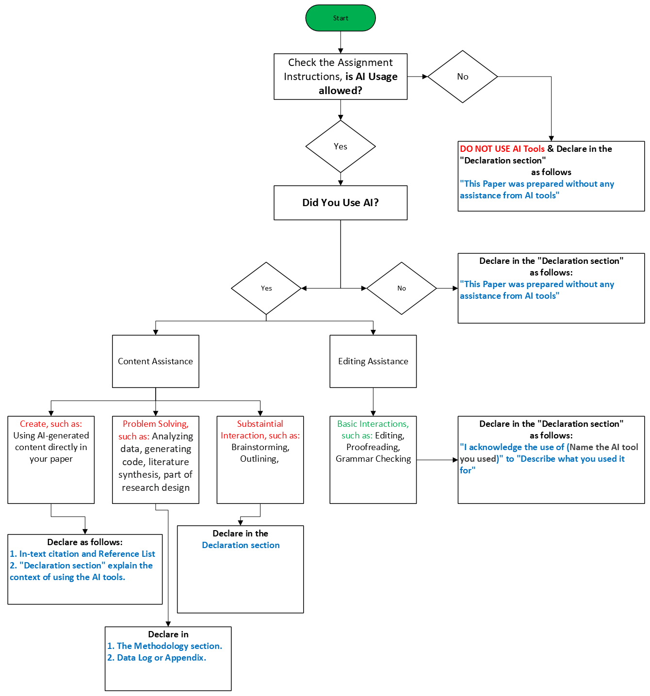 | Used AI to brainstorm ideas, structure your outline, or check grammar. | Declare it in a statement at the end of your paper or in your methodology. |